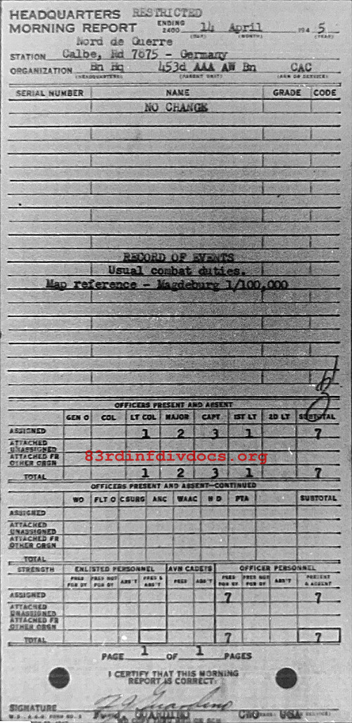 Morning report HQ/453AAA for April 14, 1945