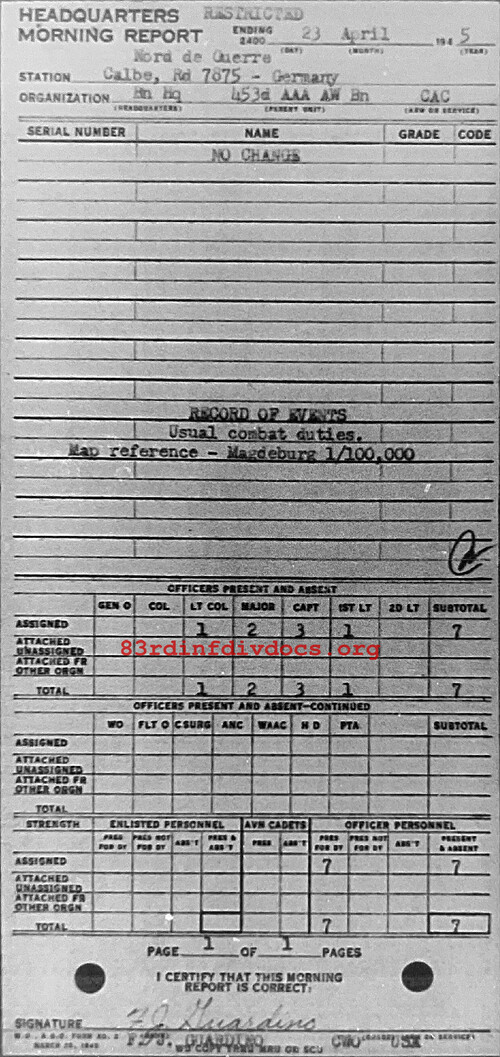 Morning report HQ/453AAA for April 23, 1945