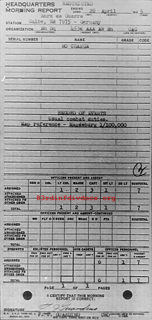 Morning report HQ/453AAA for April 28, 1945