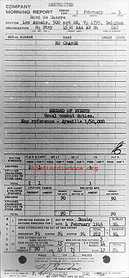 Morning report HQBTRY/453AAA for February 2, 1945