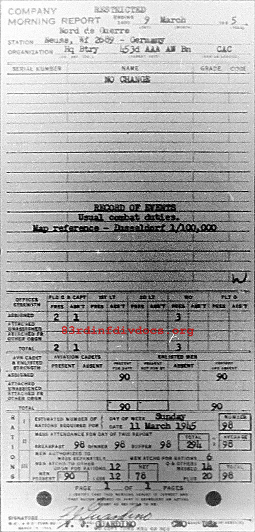 Morning report HQBTRY/453AAA for March 9, 1945