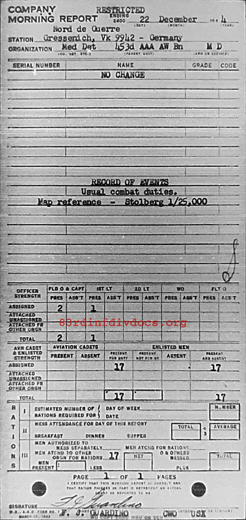 Morning report MEDDET/453AAA for December 22, 1944