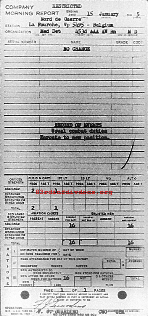Morning report MEDDET/453AAA for January 15, 1945