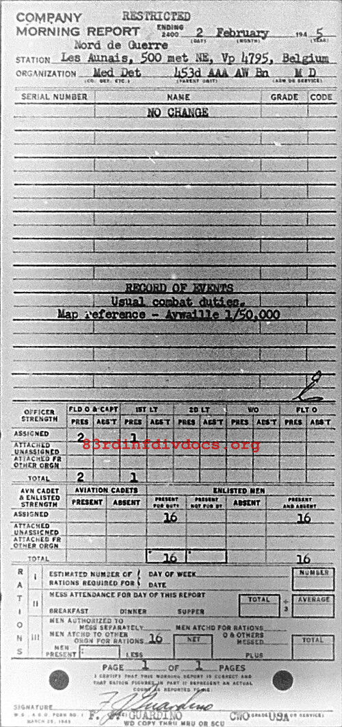 Morning report MEDDET/453AAA for February 2, 1945