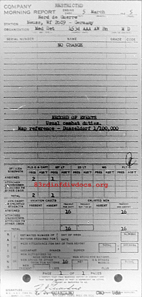 Morning report MEDDET/453AAA for March 5, 1945