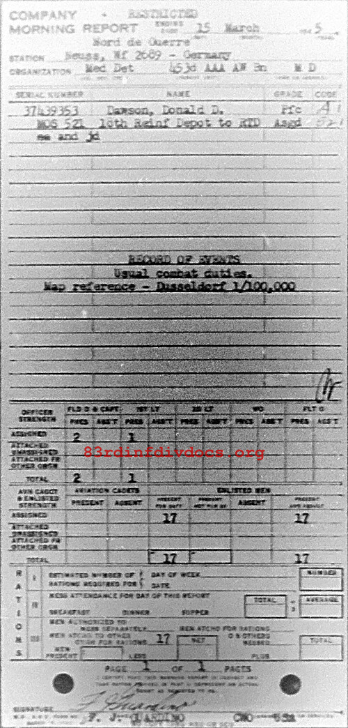 Morning report MEDDET/453AAA for March 15, 1945