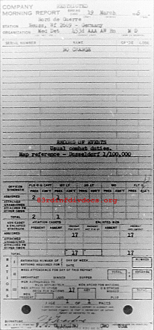 Morning report MEDDET/453AAA for March 19, 1945