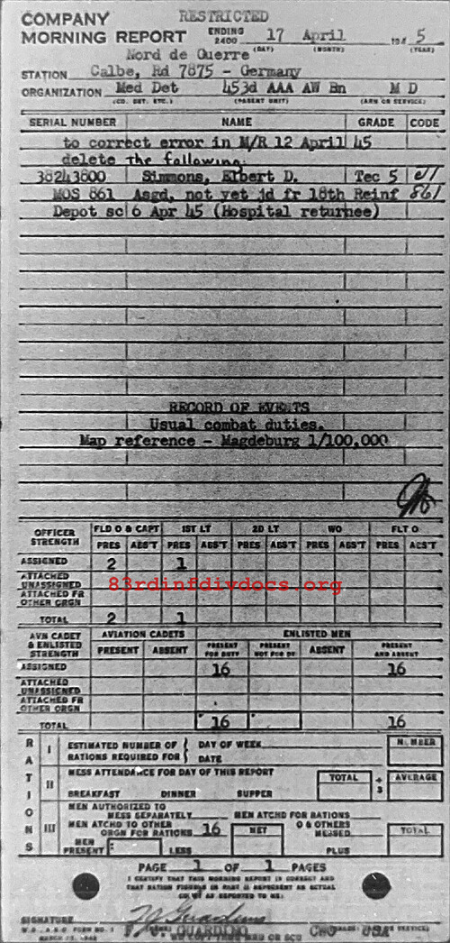 Morning report MEDDET/453AAA for April 17, 1945