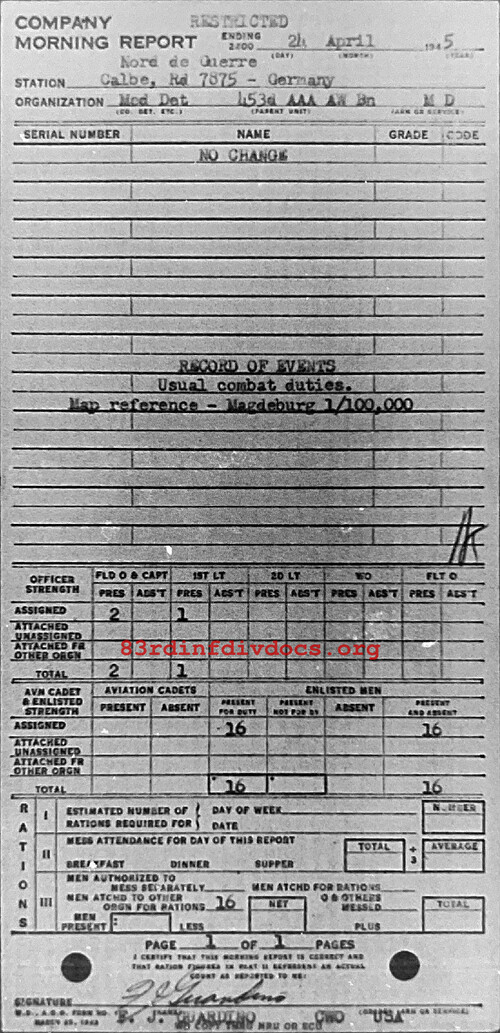 Morning report MEDDET/453AAA for April 24, 1945