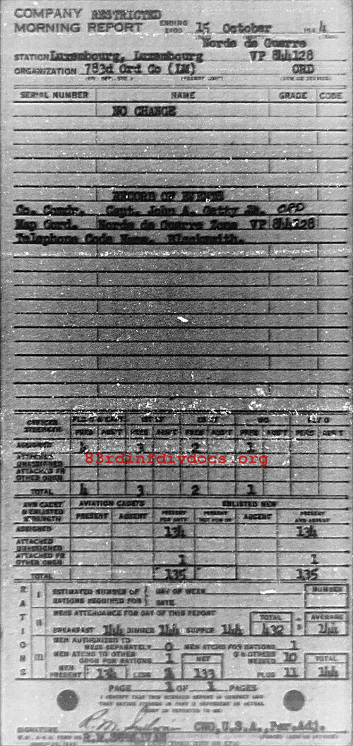 Morning report 783ORD for October 15, 1944