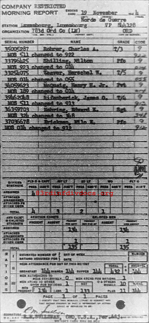 Morning report 783ORD for November 19, 1944