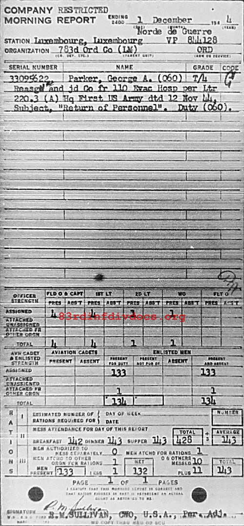 Morning report 783ORD for December 1, 1944