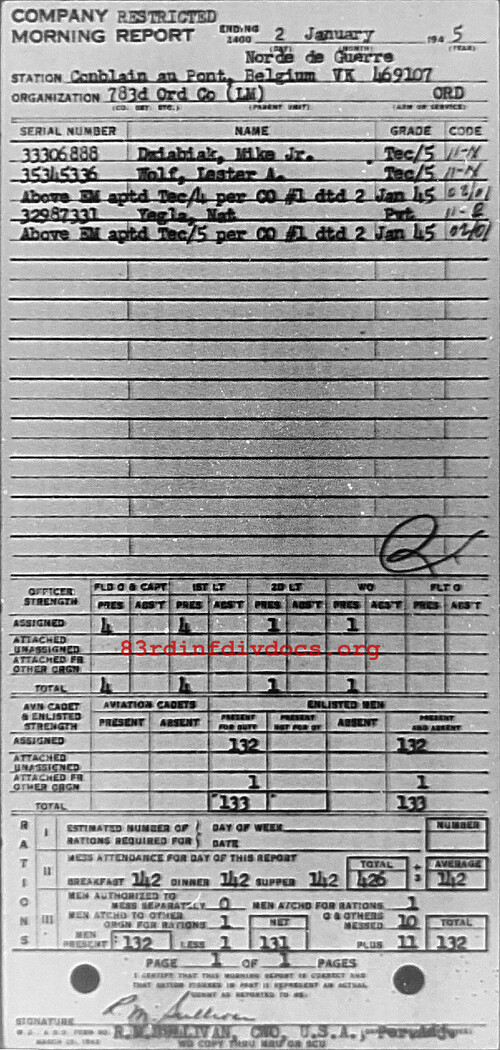 Morning report 783ORD for January 2, 1945