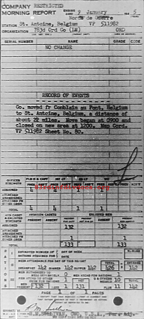 Morning report 783ORD for January 9, 1945