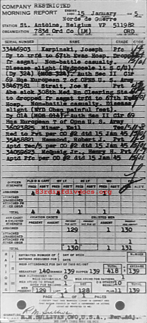 Morning report 783ORD for January 15, 1945