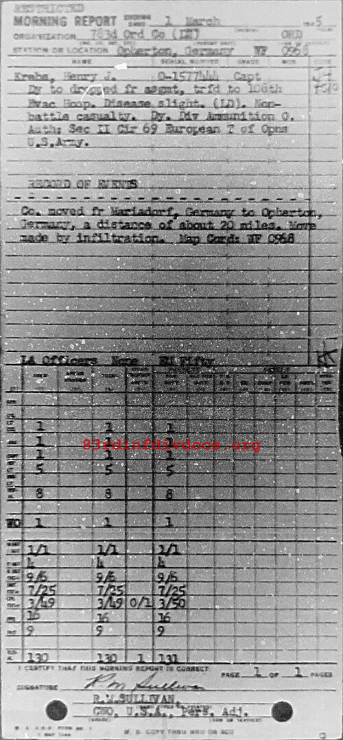 Morning report 783ORD for March 1, 1945