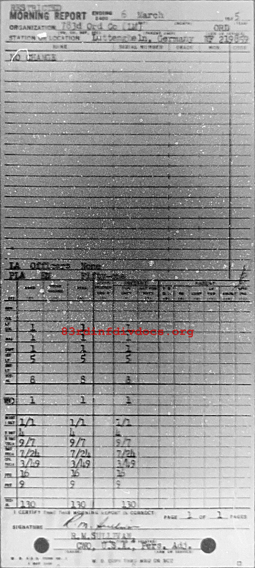 Morning report 783ORD for March 6, 1945