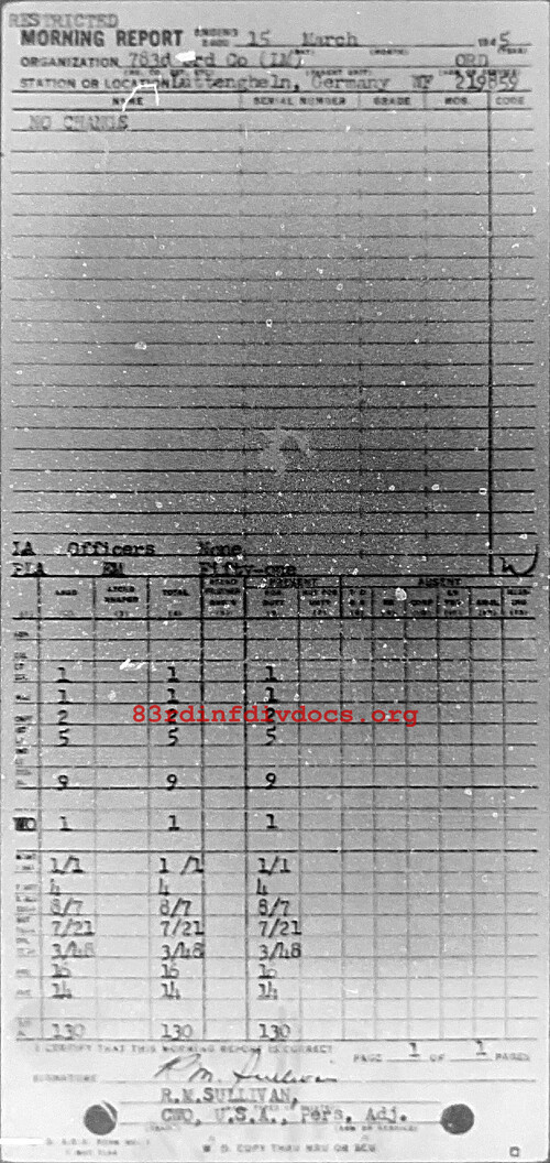 Morning report 783ORD for March 15, 1945
