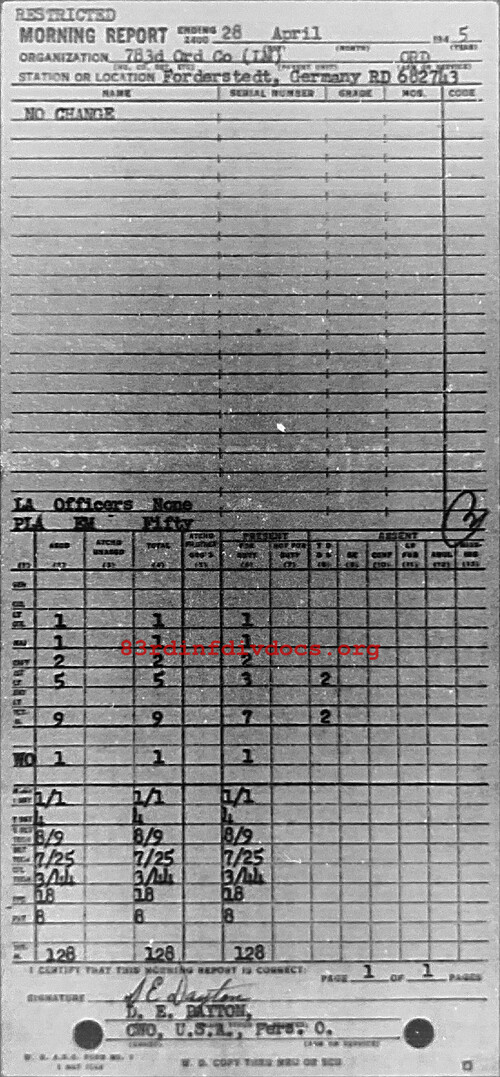 Morning report 783ORD for April 28, 1945