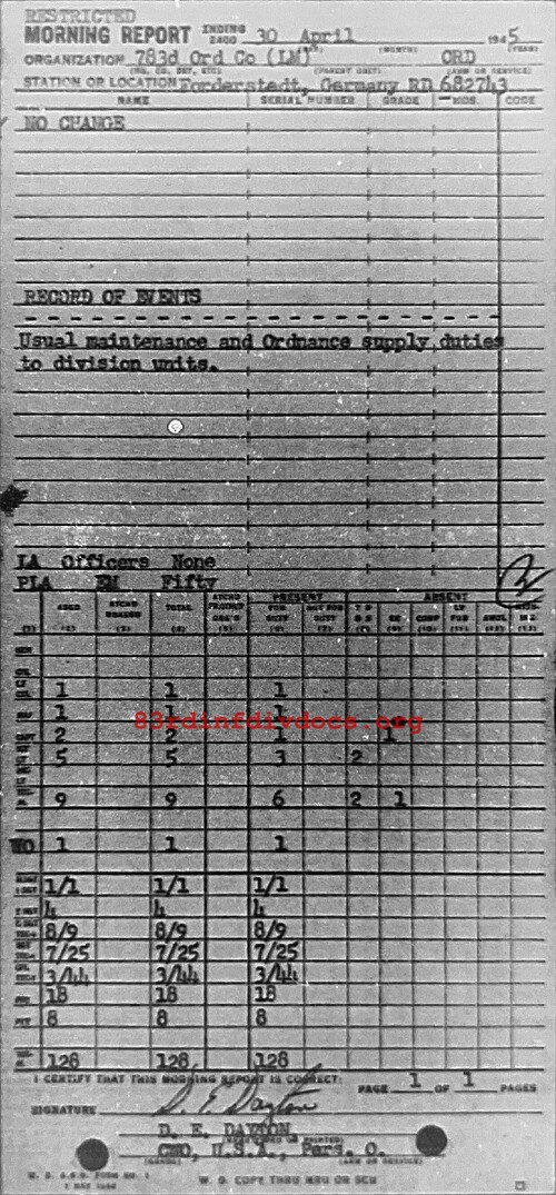 Morning report 783ORD for April 30, 1945