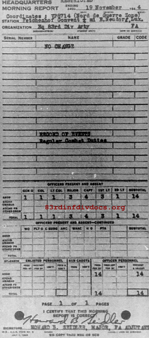 Morning report ARTYHQ/83 for November 19, 1944