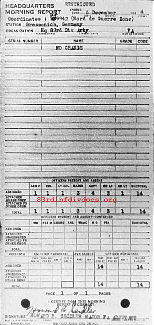 Morning report ARTYHQ/83 for December 5, 1944