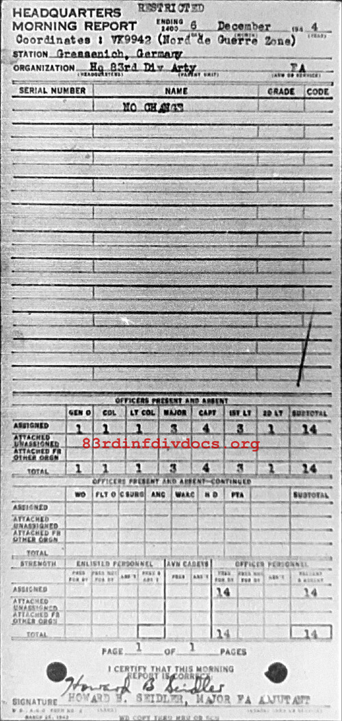 Morning report ARTYHQ/83 for December 6, 1944
