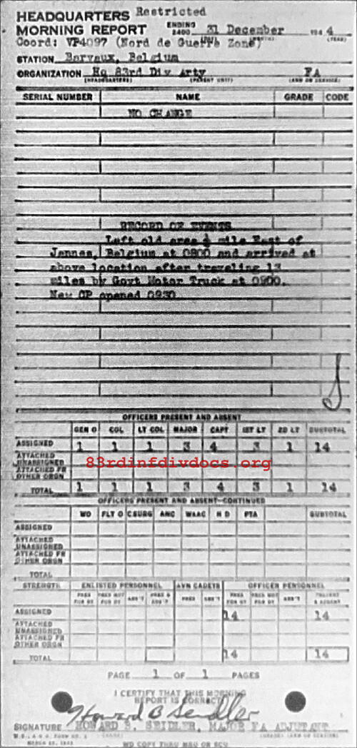 Morning report ARTYHQ/83 for December 31, 1944