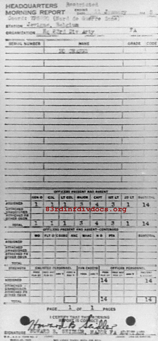 Morning report ARTYHQ/83 for January 11, 1945