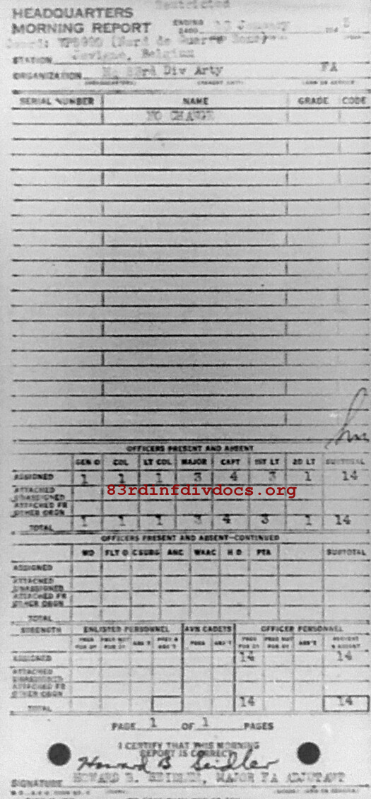 Morning report ARTYHQ/83 for January 13, 1945
