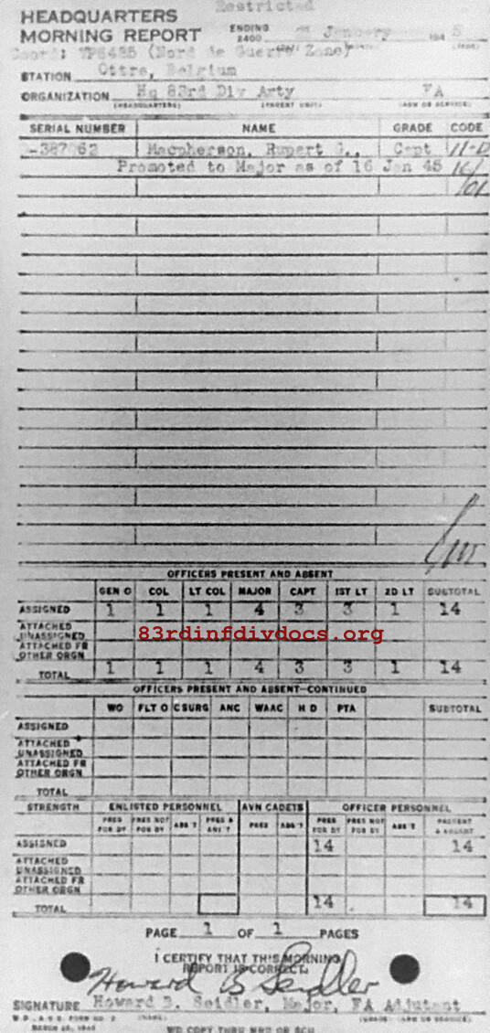 Morning report ARTYHQ/83 for January 21, 1945
