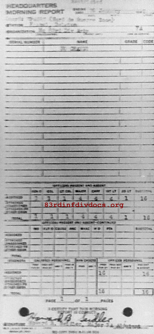 Morning report ARTYHQ/83 for January 26, 1945