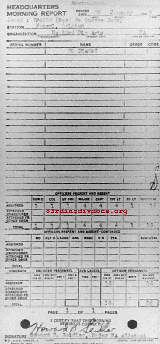 Morning report ARTYHQ/83 for January 28, 1945