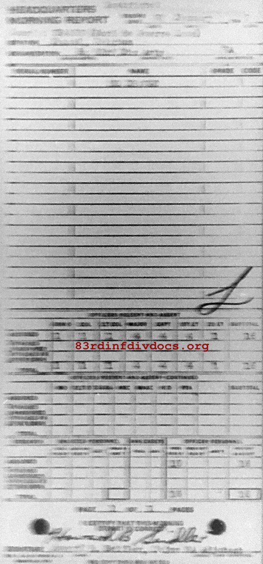 Morning report ARTYHQ/83 for January 30, 1945