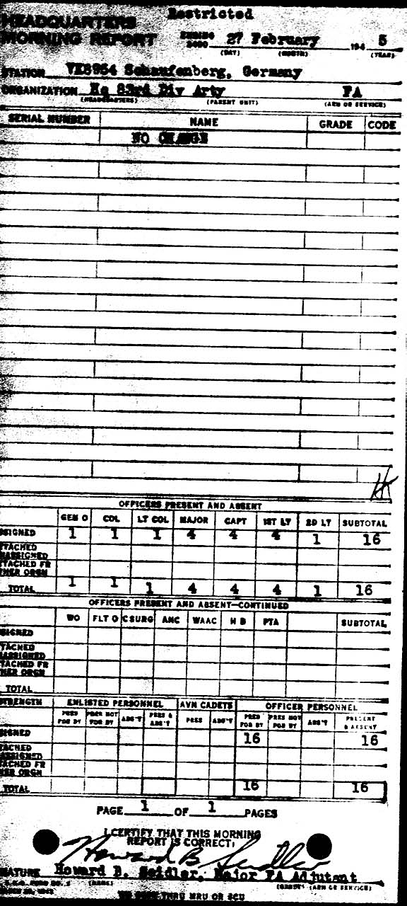 Morning report ARTYHQ/83 for February 27, 1945