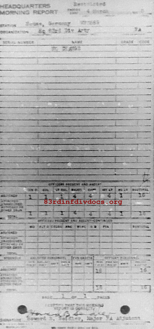 Morning report ARTYHQ/83 for March 4, 1945