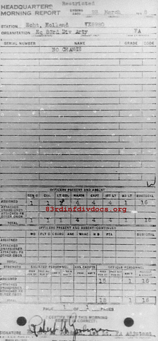 Morning report ARTYHQ/83 for March 23, 1945