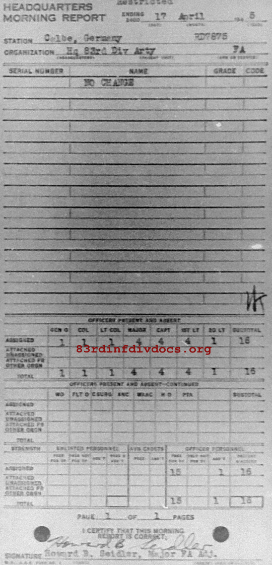 Morning report ARTYHQ/83 for April 17, 1945
