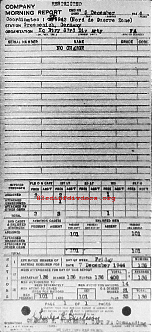 Morning report ARTYHQBTRY/83 for December 5, 1944