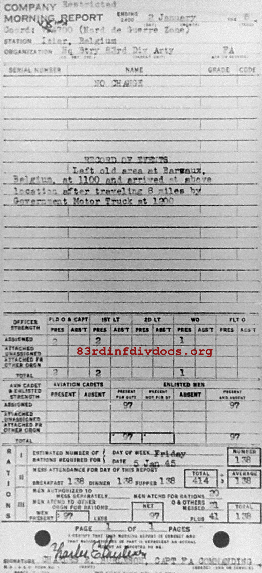 Morning report ARTYHQBTRY/83 for January 2, 1945