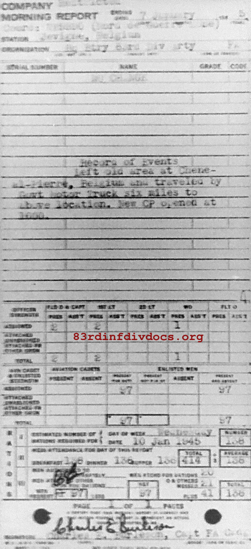 Morning report ARTYHQBTRY/83 for January 7, 1945