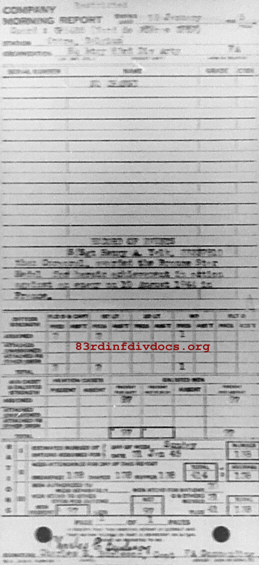 Morning report ARTYHQBTRY/83 for January 18, 1945