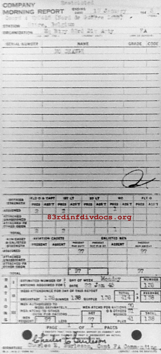 Morning report ARTYHQBTRY/83 for January 19, 1945