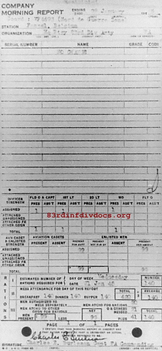 Morning report ARTYHQBTRY/83 for January 28, 1945