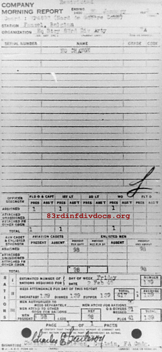 Morning report ARTYHQBTRY/83 for January 30, 1945