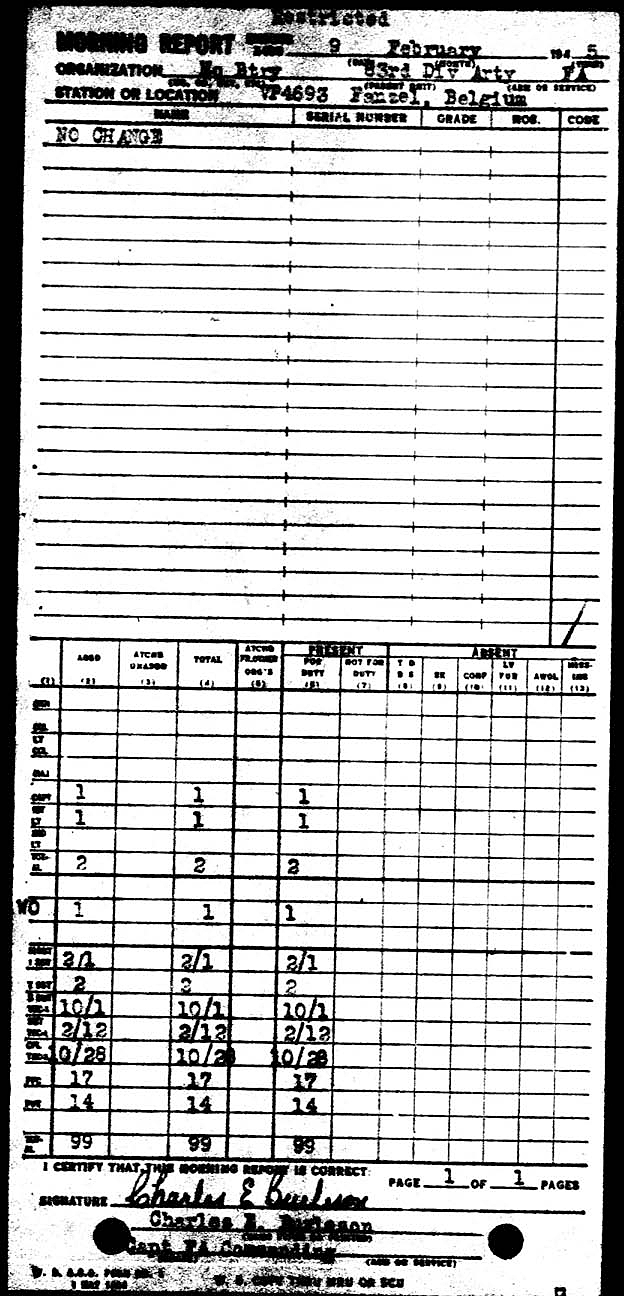 Morning report ARTYHQBTRY/83 for February 9, 1945