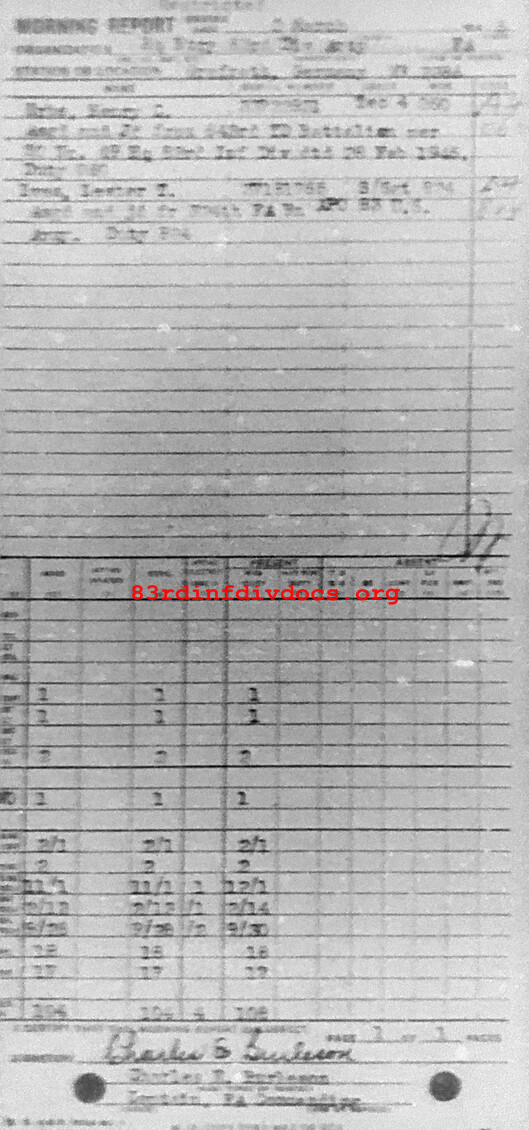 Morning report ARTYHQBTRY/83 for March 2, 1945