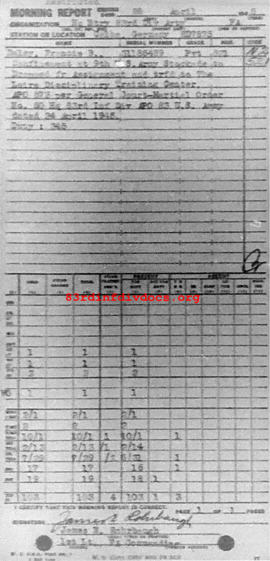 Morning report ARTYHQBTRY/83 for April 28, 1945