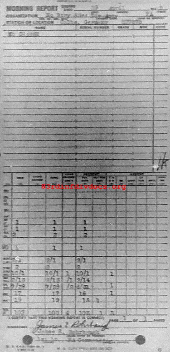 Morning report ARTYHQBTRY/83 for April 29, 1945