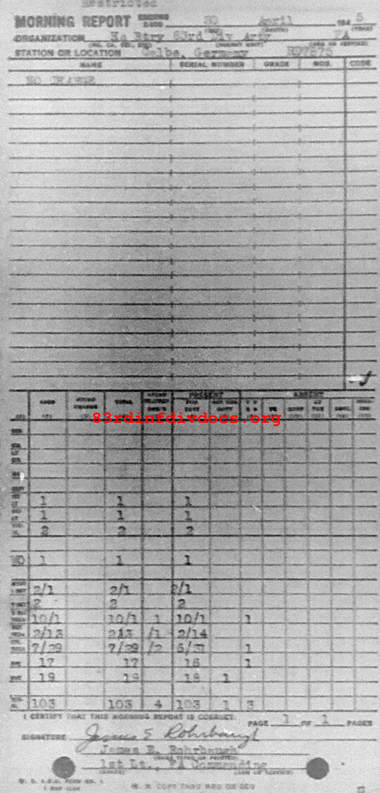 Morning report ARTYHQBTRY/83 for April 30, 1945